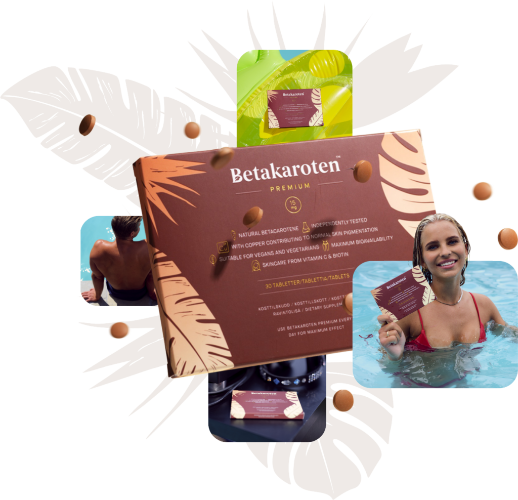 Betakaroten er et fargestoff som tilhører familien karotenoider. Ved inntak omdannes betakaroten til vitamin A i kroppen, og fargestoffet lagres i hudcellene hvor underhudsfettet farges gyllent. Betakaroten Original™ og Premium™ gir deg en frisk og gyllenbrun farge uten at man trenger å eksponere huden for timesvis med sol, enten ute eller i solarium.